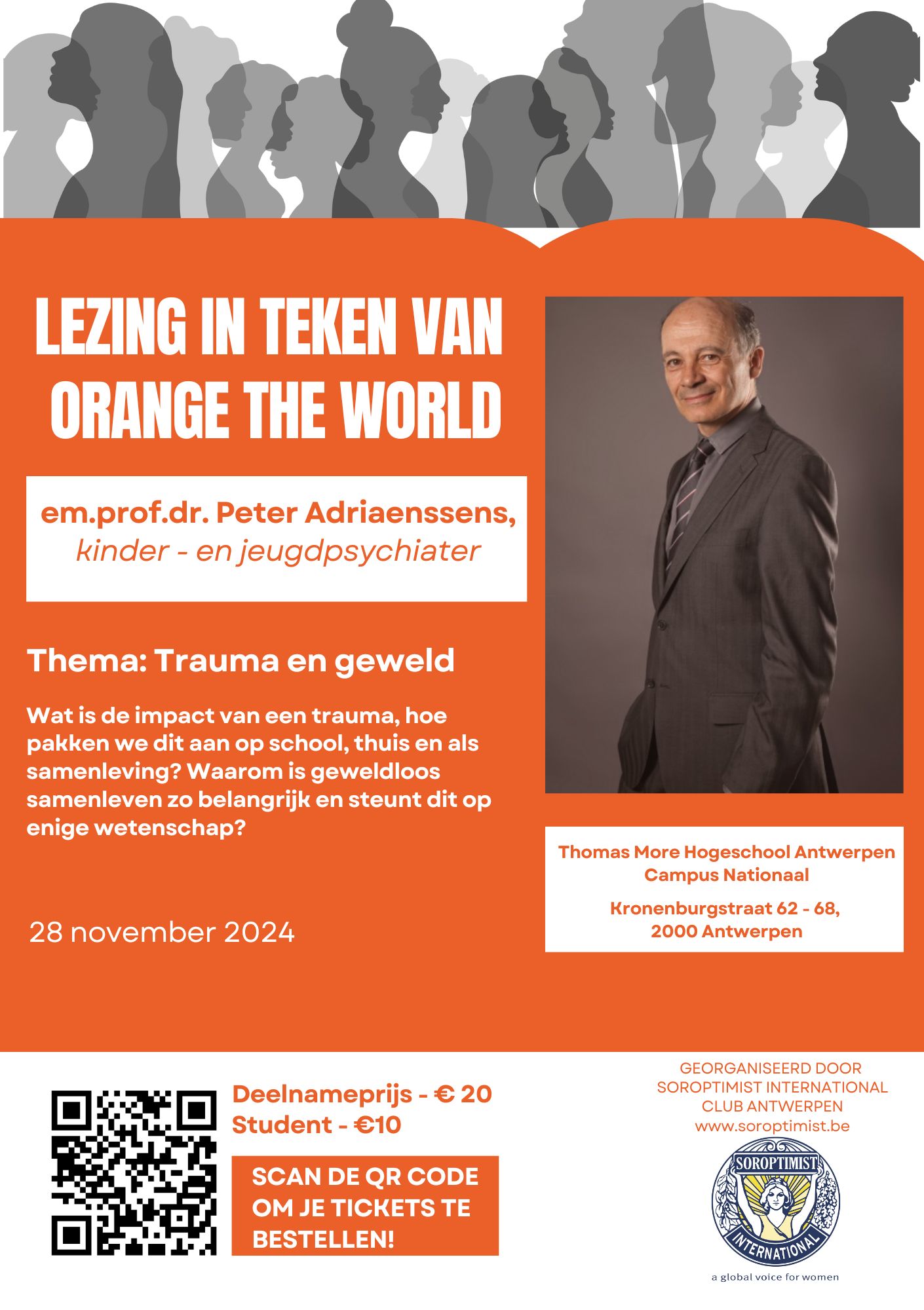 In het kader van Orange the world hebben we mevrouw Melanie De Roose uitgenodigd . Zij is de bezielster van de organisatie Fonkel. Melanie brengt de lezing " Stilte ", zij wil de stilte rond kindermishandeling en intrafamiliaal geweld doorbreken.